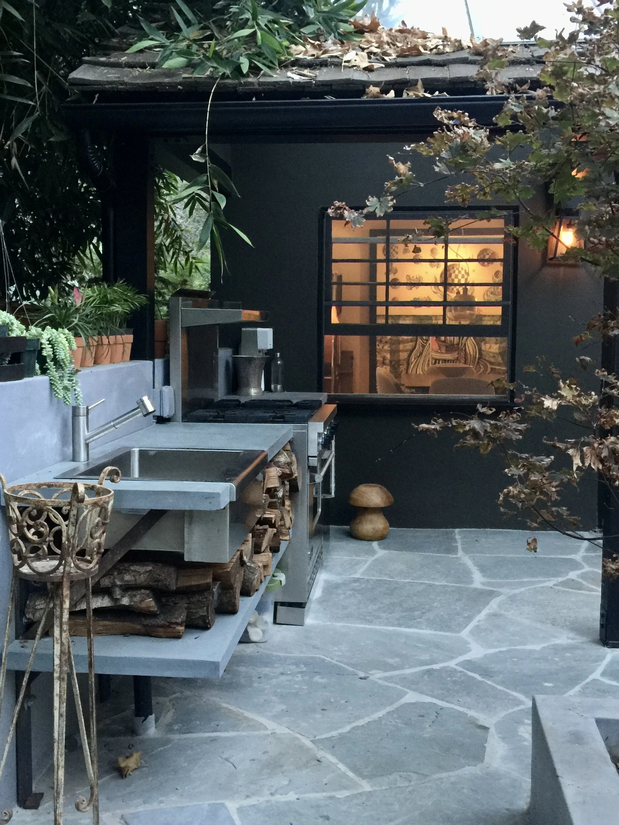 Poggenpohl, Miele, Thermador stainless steel. Outdoor kitchen w Viking Grill and Oven.